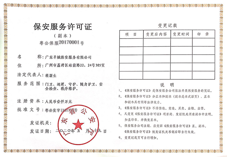 保安服务许可证