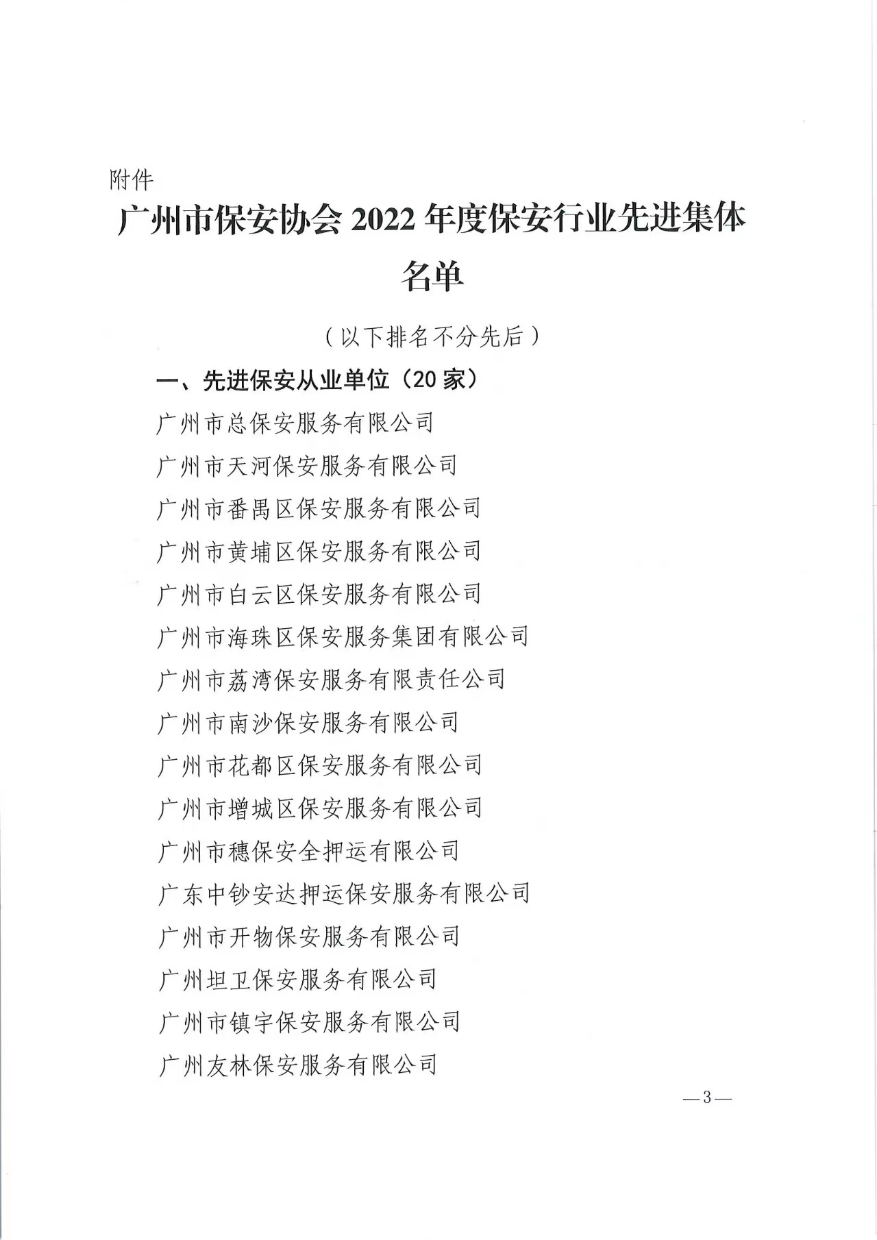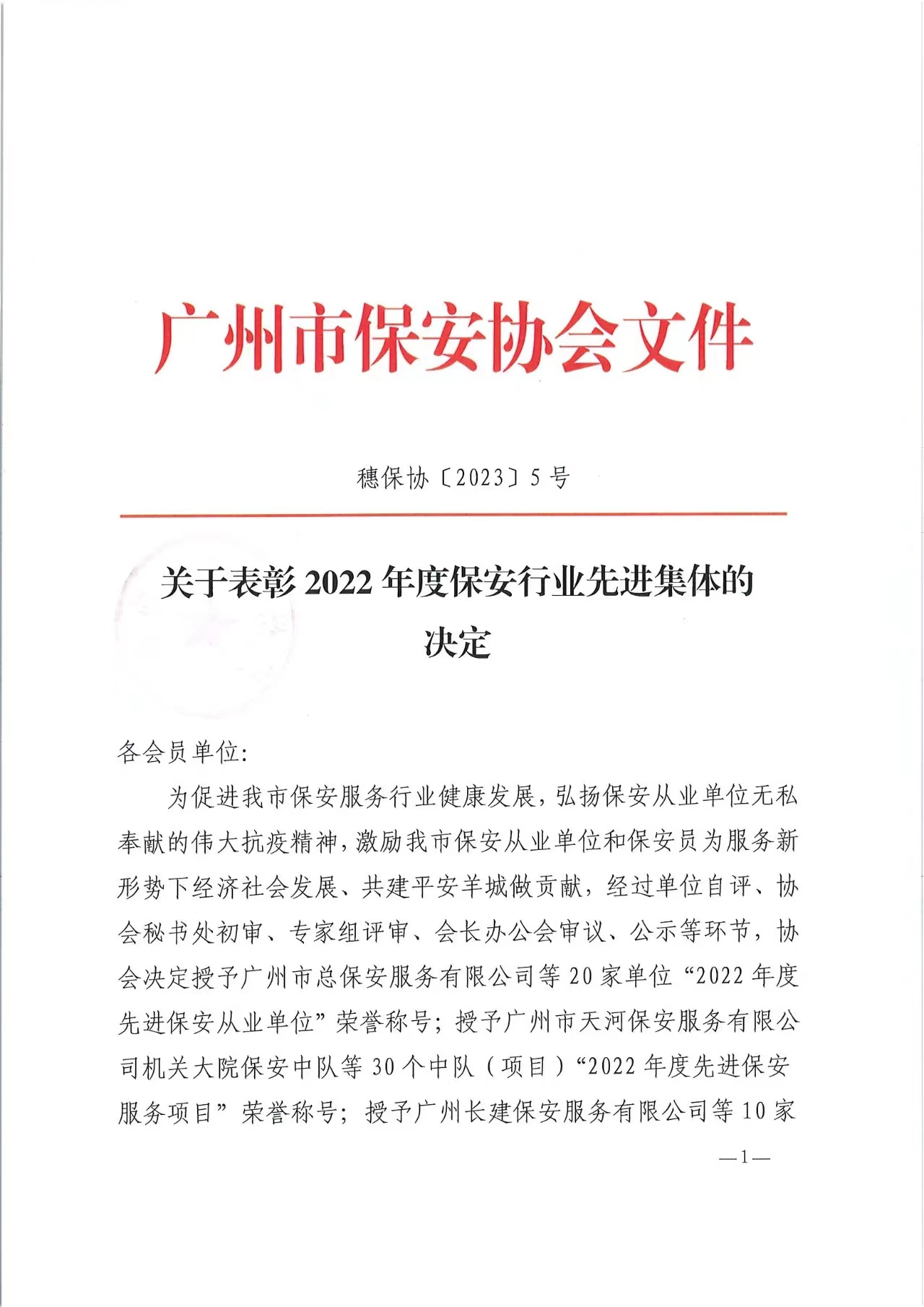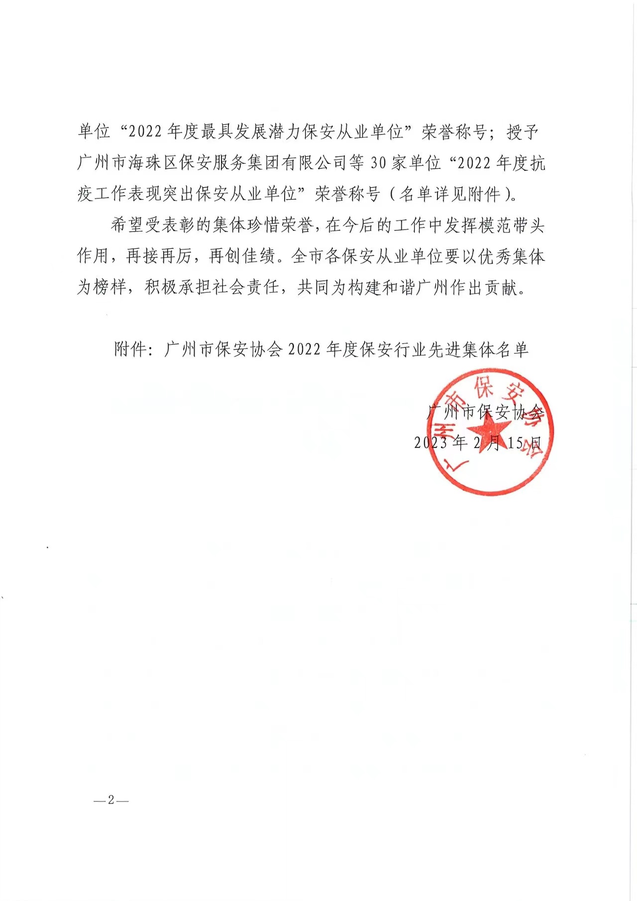 2022年度广州市保安行业先进集体单位