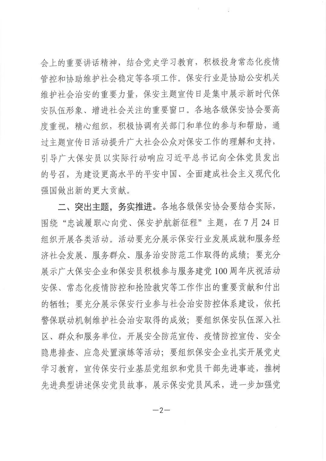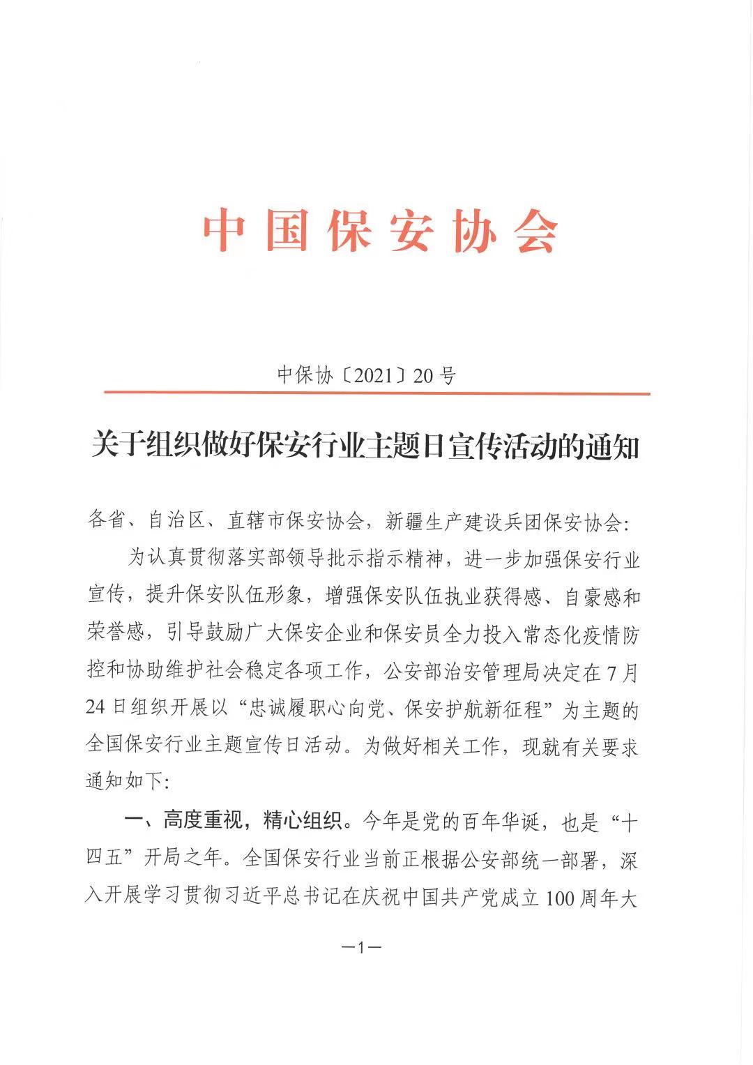 中国保安协会关于组织做好保安行业主题日通知